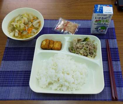 すまし汁(鶏肉、にんじん、玉ねぎ、キャベツ、青ねぎ)