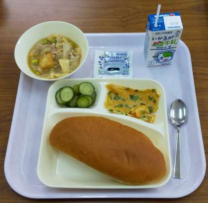 豚肉と野菜の煮もの(厚あげ、たけのこ、玉ねぎ、むき枝豆、豚肉)