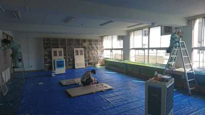 現在、管理作業員さんが壁や天井をきれいに塗り直しています。