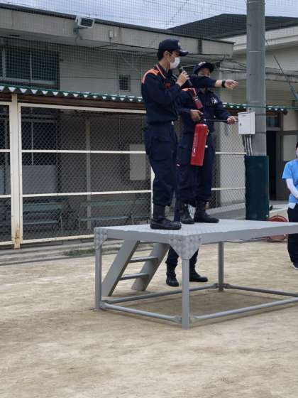 本日6限、住之江消防署の方に来ていただき自衛消防訓練を実施しました。