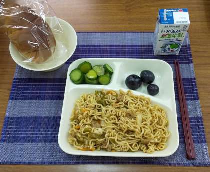 焼きそば(豚肉、いか、にんじん、玉ねぎ、ピーマン、キャベツ)