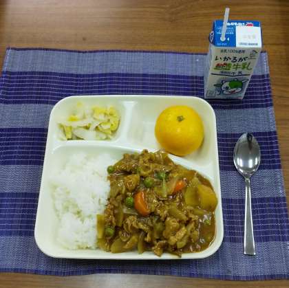 ポークカレーライス(豚肉、玉ねぎ、にんじん、じゃがいも、グリンピース)