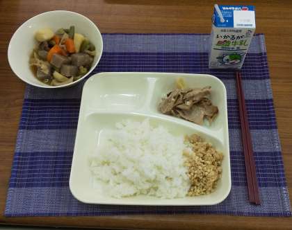 ふきよせ煮(さといも、こんにゃく、れんこん、たまねぎ、にんじん、さんどまめ、しめじ)