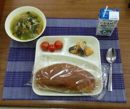 肉団子と麦のスープ(ほうれん草、にんじん、だいこん)