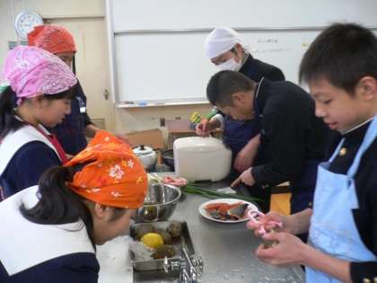 2年生 家庭科で調理実習に取り組みました。