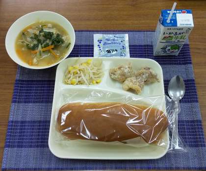 中華みそスープ(豚肉、にんじん、玉ねぎ、キャベツ、にら)