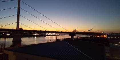 夕方6時ごろ、4階から大和川方面を眺めた景色です。お天気も良く、一面に澄んだ空がきれいでしたので撮影しました。だんだんと夜の訪れが遅くなり、明るい時間が長くなってきたように思えます。少しずつではありますが、春の訪れを感じるひとときでした。