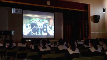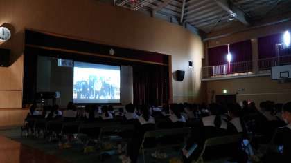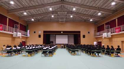 次に、新北島中学校の全教職員のみなさんからのお祝いメッセージビデオを鑑賞しました。心温まるエールをありがとうございます。
