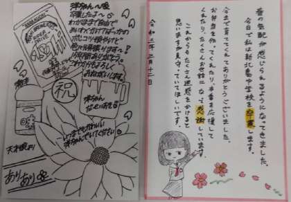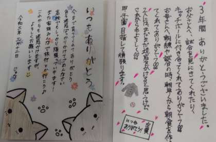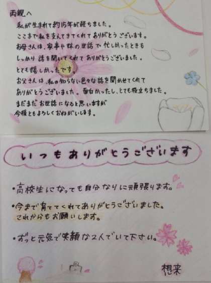 卒業に向けて、お家の方々にお礼の葉書を作りました。