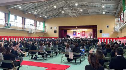 コロナウイルスの影響で、一人ひとりに証書の授与は出来ませんでしたが、143名全員が式に出席することができました。