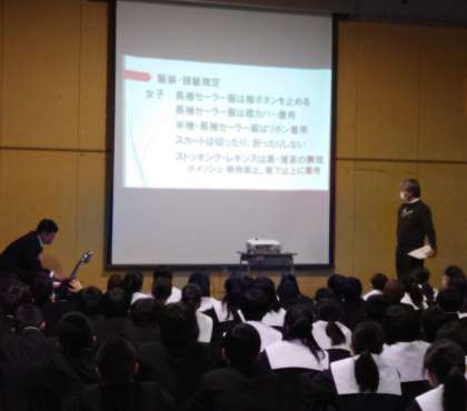 また、全学年でパワーポイントを見ながら学校のルールについての話も聞きました。