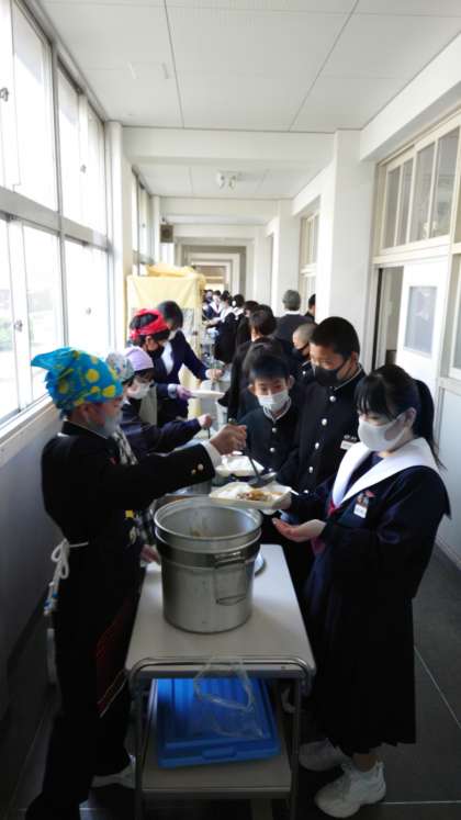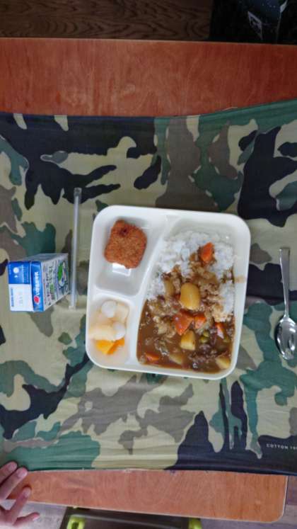 一年生も始めてのグループメンバーでの配膳を頑張っています。