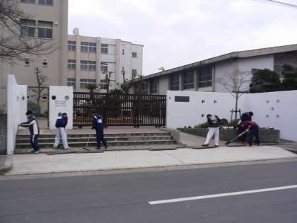 保護者と生徒有志で、卒業式に向けて清掃を行いました。