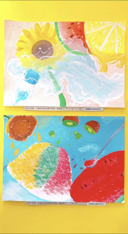 今回は「夏」をテーマに思い思いのイメージを膨らませ、色彩表現で表しました。