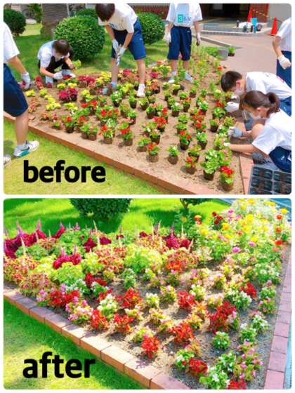 6月に、かんでんエルハートの皆さんと緑化委員が協力して植えた花の苗が、ぐんぐん成長し美しく咲いています。