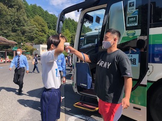 バスに乗る前には毎回、消毒と検温をしています。