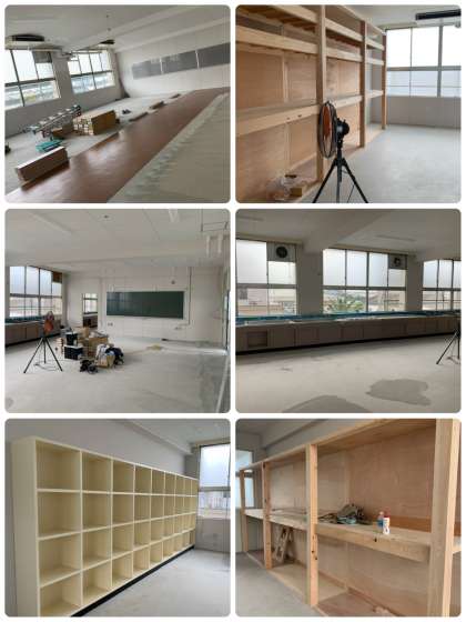 現在、授業は別の教室や普通教室での授業となっていますが、10月中には新教室で学習及び部活動を行うことができるようになる予定です。どんな教室に生まれ変わるか楽しみですね。