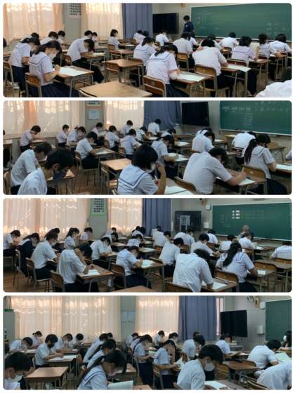 10月15日(金)中間テスト2日目です。テスト勉強の成果は表れそうでしょうか。写真は3年生です。学校全体としては、今日で中間テストは終わりますが、3年生は来週の19日(火)に「大阪市英語力調査」、22日(金)には「第3回実力テスト」があります。