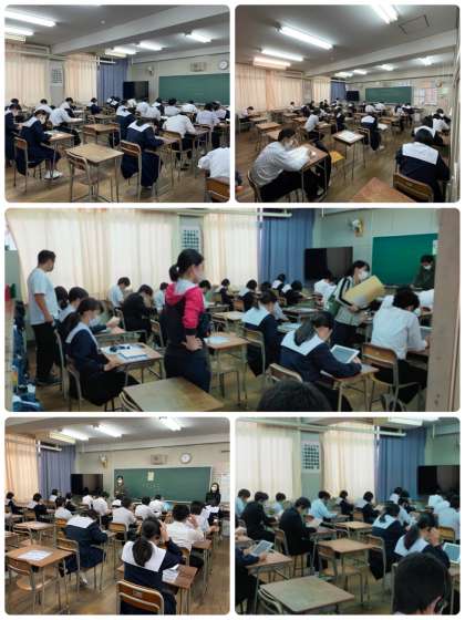 一人一台学習者端末を使用しての受験となりました。普段のテストでリスニング問題に取り組むことはありますが、スピーキング問題に回答することは、あまりないので少し緊張していたように思います。生徒たちは集中して取り組んでいました。
