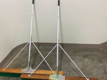 令和3年度の体育施設開放委員会の予算で、体育館清掃用モップのスペア7つと運動場整地用のコートブラシ2本を購入しました。各使用団体と学校で共用いたします。