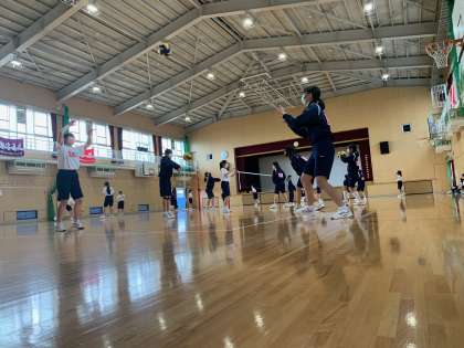 体育の授業の様子です。1年生女子はバレーボールに取り組んでいます。