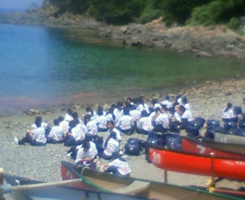 浜辺で昼食です。