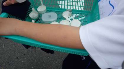科学部では、新北島・平林地区で大量繁殖している特定外来生物のアルゼンチンアリの調査と、校内の駆除を行っています。