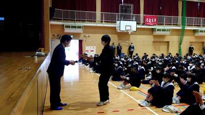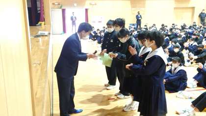 その後、図書の貸出数が多かった生徒のみなさんと、吹奏楽部のソロコンテストの賞状伝達が行われました。