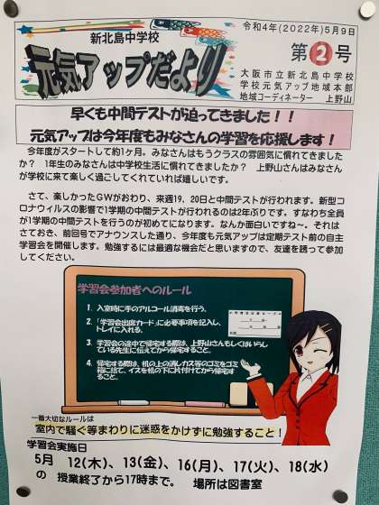 本日から図書室で中間テスト前の元気アップ学習会が実施されました。人数は昨年度よりも少ない感じでしたが、集中して学習に取り組んでいました。また、明日13日と16、17、18日も図書室にて開催しています。ぜひ参加してください。