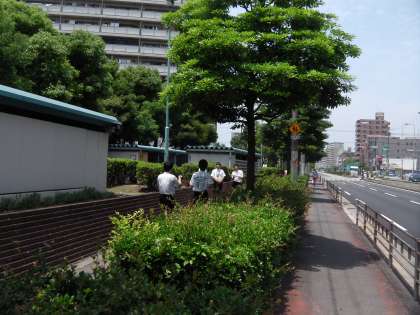 本日は新北島地区のアルゼンチンアリの調査を、科学部の生徒が3班に分かれて行いました。