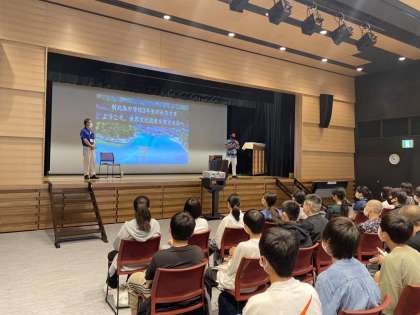 ファシリテーターの方が、クイズなどを通して導入を行ってくださっています。事前学習で、生徒のみなさんから出た質問を1人1台端末を使って送信したのですが、そちらの質問を元にクイズを出題してくださっていました。みなさん興味深く取り組んでいました。