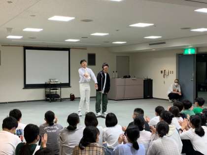 レクリエーション大会の様子です。生徒有志による出し物、写真は漫才の様子です。