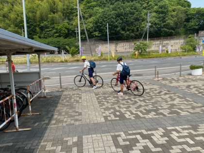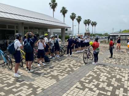 選択別体験学習の集合場所である、多々羅しまなみ公園に到着し、それぞれの体験場所へ移動しての活動が始まりました。こちらはサイクリングの様子です。