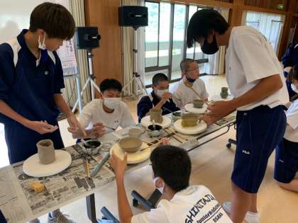 選択別体験学習、陶芸体験の様子です。