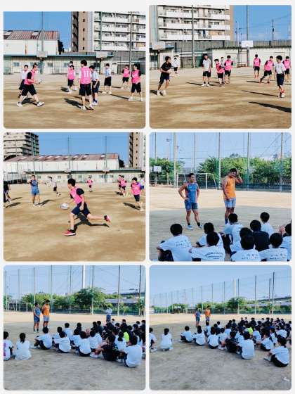 最後は試合形式で行いました。みんな初めてとは思えない動きで、上達の早さに驚きました。それぞれの部活の特徴が出ていて面白かったです。