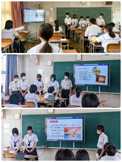 ?2年生は、1学期から取り組んできた平和学習のまとめとして各班で発表を行いました。