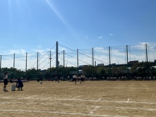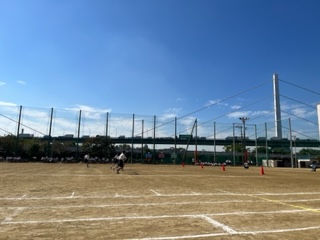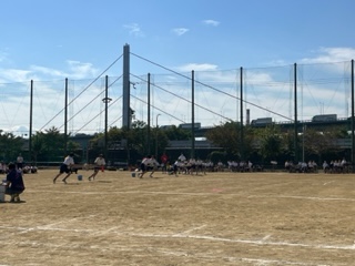 この競技は2人1組で、2本の棒の間にボールをはさみながら、コーンを回り、2人で息を合わせて走ります。