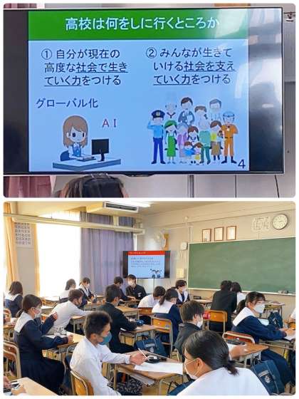 最後に、進路を考えるときに大切なこととして日々の授業や行事、部活動など今しか得ることのできない学びを大切にとのお話もいただきました。