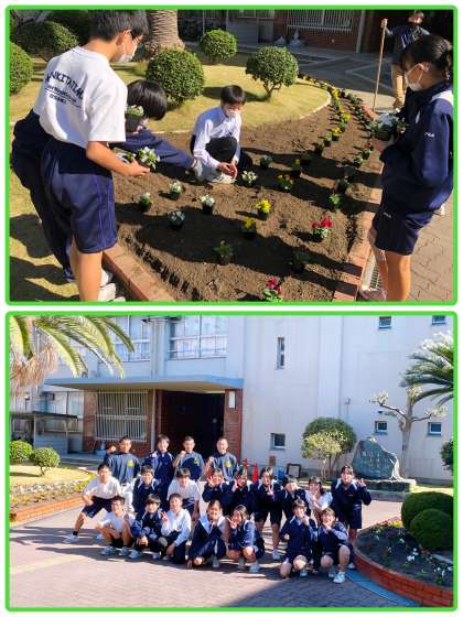 期末テスト終了後、緑化委員が花壇の苗の植え替えを行いました。