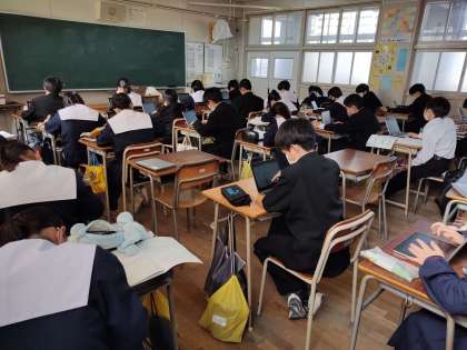 今後のキャリア教育につながるようタブレットを使用し、適職診断を行いました。