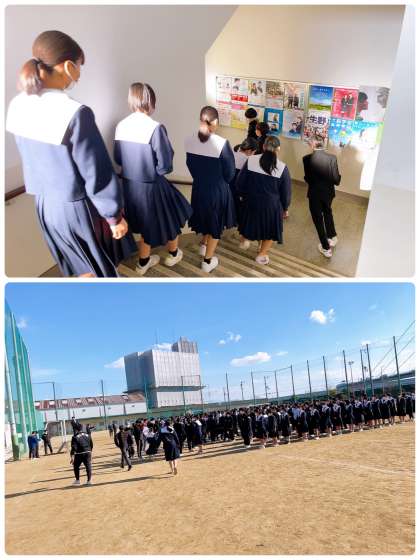 本日6限、地震・津波を想定した避難訓練を行いました。