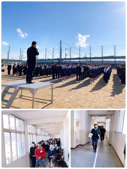 校長先生より、阪神・淡路大震災から28年目となることを受けてのお話と、今後発生するかもしれない大きな地震に備え自分たちが住む地域の「強み」「弱み」はどんなところか知っておくことの大切さについてお話がありました。