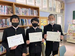 2年生男子2名が優勝、1年生男子1名が3位、1年生女子1名が準優勝という結果になりました。