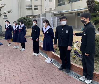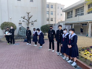 今週で、3年生風紀委員の最後の仕事が終わりました。朝早く来て、大きな声で挨拶をし、みんなの服装の乱れがないかしっかりとチェックしてくれました。この委員会活動を通して得たものを高校でも活かしてもらえたらと思います。