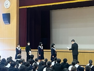 はじめに元気アップ学習会に参加した生徒の表彰があり、