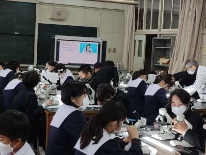 顕微鏡でオオカナダモを観察し、スケッチしました。
