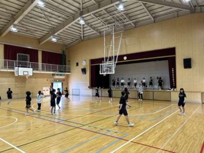 女子バスケットボール部はシュート練習です。