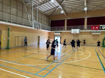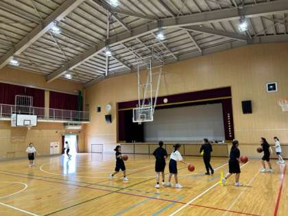 体育館では女子バスケットボール部が活動しています。本校では大所帯の部活動の1つです。みんなで協力して取り組めていますね!頑張ってください。