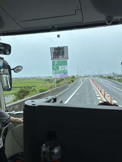 バスは順調に進行しており、現在、四国地方の徳島に入りました!行程も30分ほど早く進んでいます。まだ少し雨模様ですが、これから快晴に向かうことを期待しながら、次の目的地である吉野川SAを目指します!