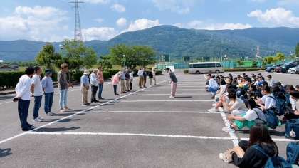 代表生徒のあいさつの後、民泊先の代表の方より「みなさんから大変大きなパワーをもらいました。私たちも本当に楽しい時間でした。またいつでも遊びに来てくださいね。これからも元気で頑張ってください。応援しています。」とメッセージをいただきました。